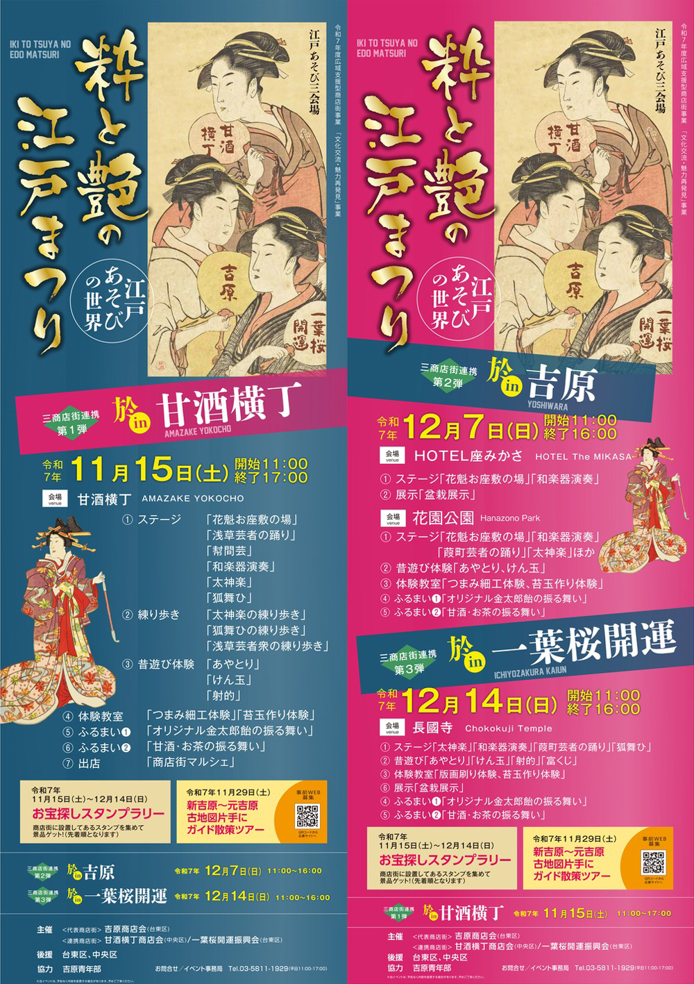 台東区の吉原商店会、中央区の甘酒横丁、一葉桜開運振興会が連携し、江戸あそびイベントを開催。